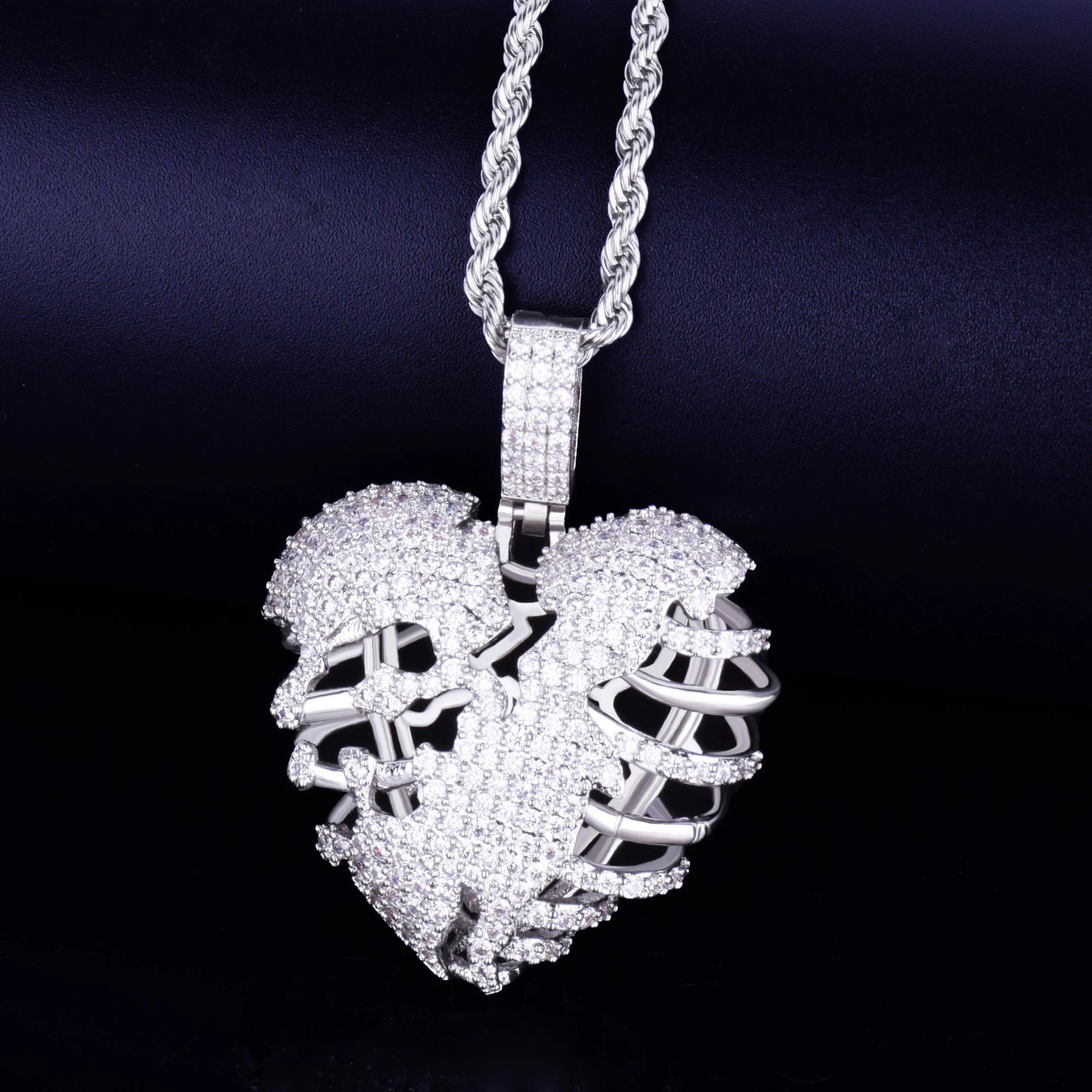 DATNEWDRIP Broken Skeleton Heart Pendant Necklace AAA Cubic Zircon Men's Hip Hop Rock Jewelry
