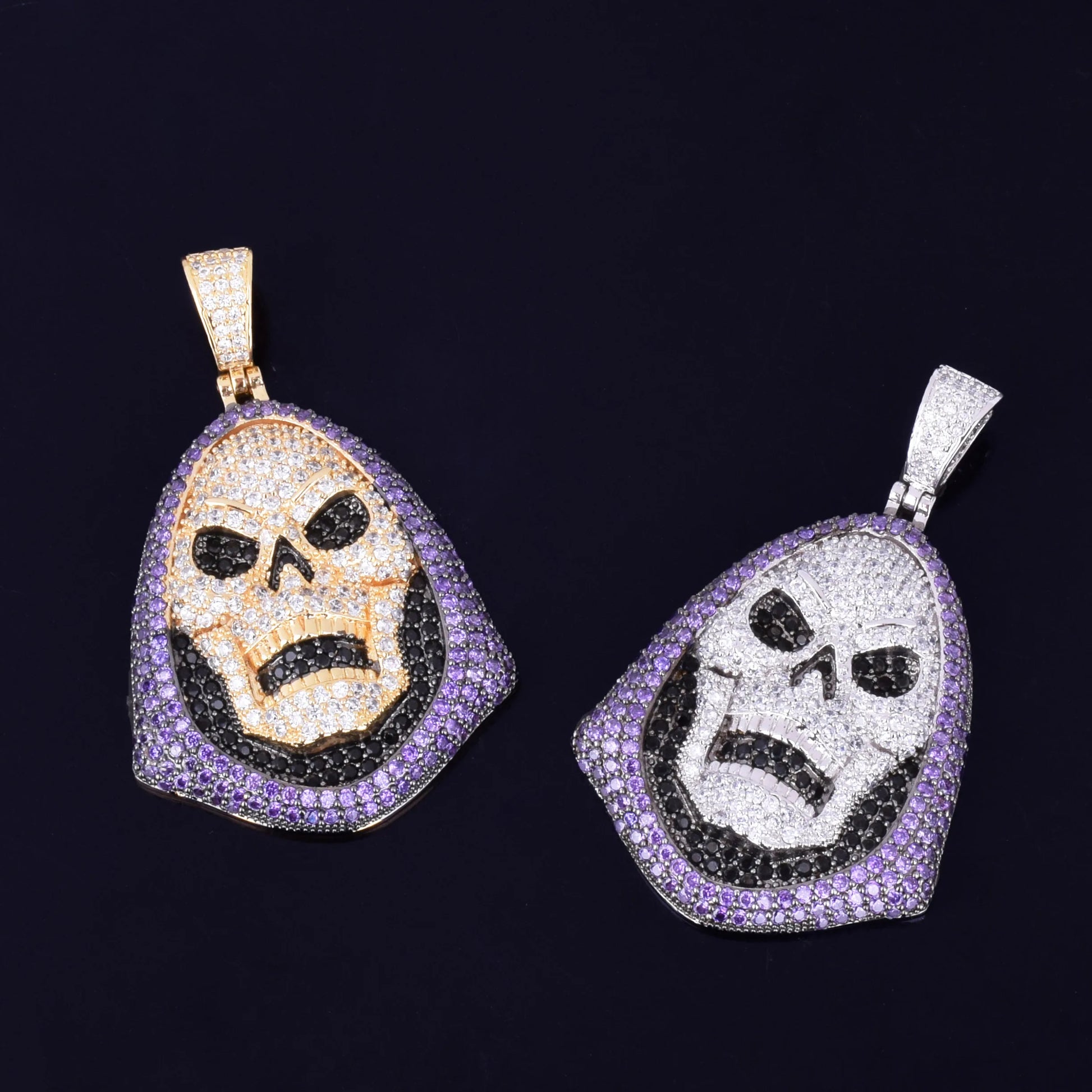 DATNEWDRIP Skull Pendant Necklace Gold Color AAA Cubic Zircon Hip Hop Rock Jewelry
